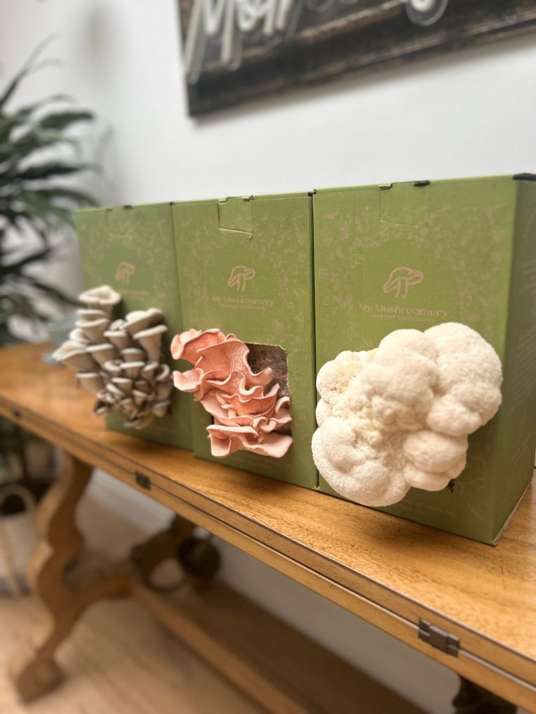 My Mushroomery grow kits are available in Pink Oyster mushroom, Grey Oyster Mushroom & Lion’s Mane Mushroom.